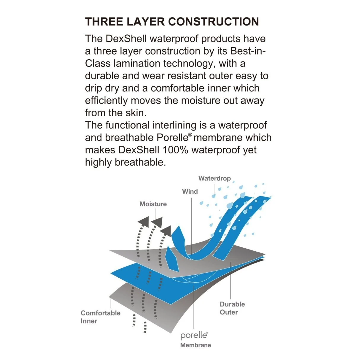 - Innenmaterial: Porelle® membrane (wasserdicht, atmungsaktiv)