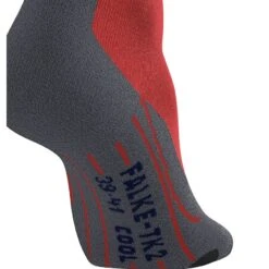 Falke Trekkingsocke TK2 (Merinowolle, Für Leichtes Gelände) Schwarz/grau/rot Herren – 1 Paar