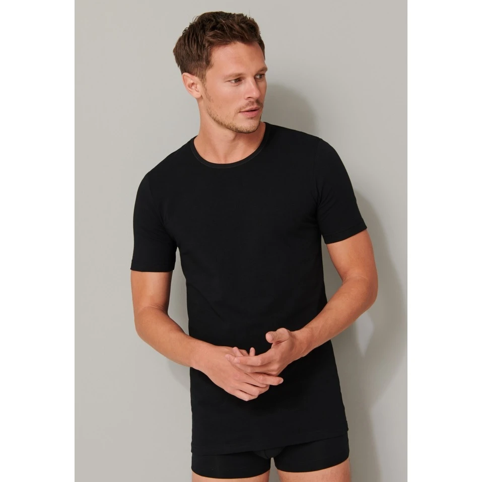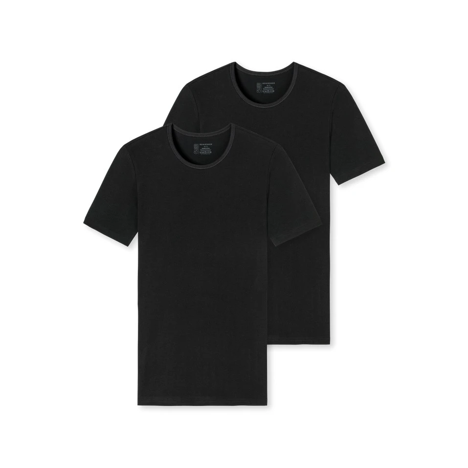 Schiesser T-Shirt 95/5 Rundhals Kurzarm (95% Baumwolle) Unterwäsche Schwarz Herren – 2er Pack