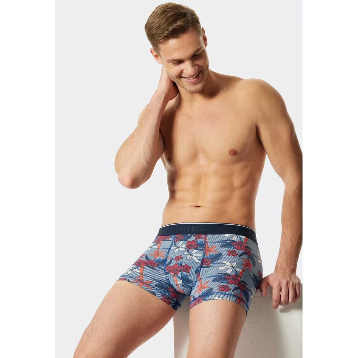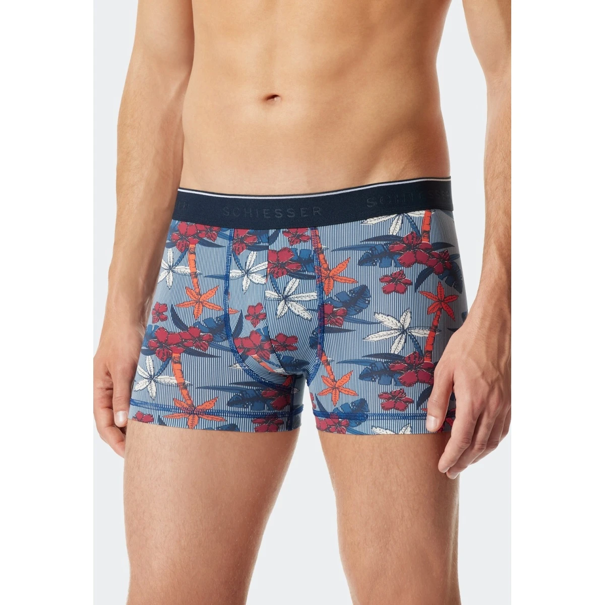 Schiesser Unterwäsche Boxershorts Microfaser Palmen Blumen Blau Herren – 1 Stück